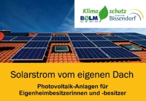 Am 6. September fand die erste, von Klimaschutzmanagerin Mona Berstermann organisierte Veranstaltung zum Thema Photovoltaik in der Gemeinde Belm statt. Aufgrund des großen Interesses wurde nun ein zweiter Infoabend im Rathaus Bissendorf organisiert. Da die Plätze vor Ort bereits ausgebucht sind, besteht die Möglichkeit, den Vortrag von Referent Peter Moser (Deutsche Bundesstiftung Umwelt) online über die Plattform Zoom zu verfolgen, sowie im Anschluss persönliche Fragen zum Thema Photovoltaik zu stellen.
